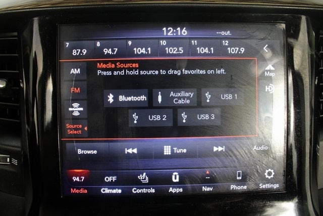 - Radio w/Seek-Scan, Clock, Speed Compensated Volume Control, Aux Audio Input Jack, Steering Wheel Controls, Voice Activation, Radio Data System and Uconnect External Memory Control